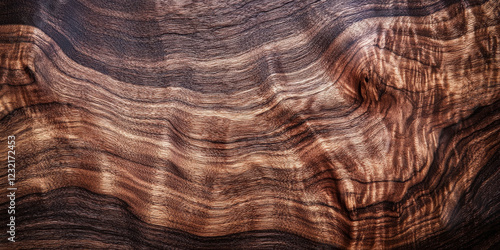© AI_images, Naklejka premium Rich walnut wood texture with dark chocolate tones and smooth grain patterns. The elegant finish makes it ideal for high-end furniture or sophisticated wooden surfaces.