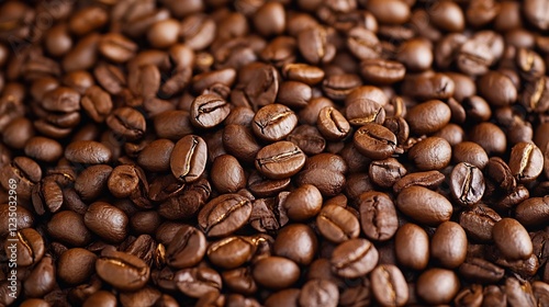 © Generative AI, Naklejka premium Rich Whole Coffee Beans Roasted to Perfection for Gourmet Brewing : Generative AI