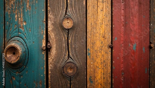 Fototapeta premium Richly colored, knotted wood; vertical grain, weathered surface , rustic,...