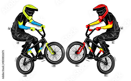 © LEMONETEA, Fototapeta premium ride by bycycle of bmx two people