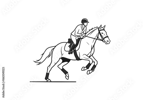 Fototapeta premium Rider and Horse in Motion A Line Drawing on transparent background