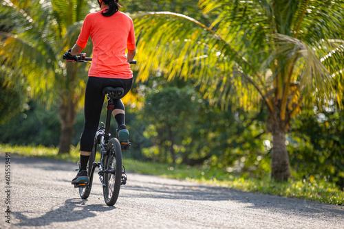 Obraz premium Riding folding bike on tropical road