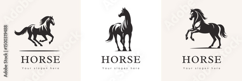 Obraz premium Riding Horse Head Silhouette Logo Set Vector 2026 New Year Symbol Riding...