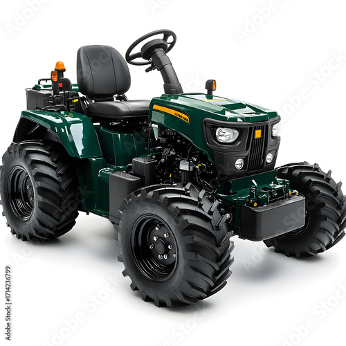 © Alex, Obraz premium Riding lawn mower with green color, isolated on white background.