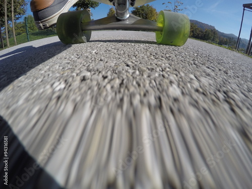 © POV_artist, Fototapeta premium Riding longboard at the city park