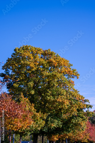 Fototapeta premium Riehen, Switzerland, is stunning in autumn, with vibrant foliage turning parks, woodlands, and riverbanks into a colorful display. A perfect time for scenic walks and photography.