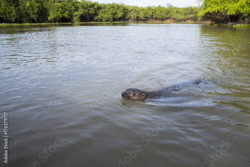 Fototapeta premium Riesenotter schwimmt im Fluss