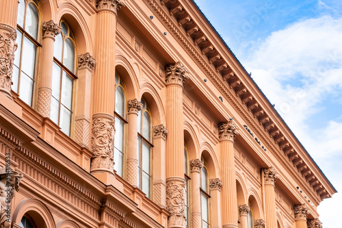 © Sunny_Smile, Fototapeta premium Riga, Latvia - September, 2019: The Riga Stock Exchange building in sunny day, facade of building in art nouveau style.