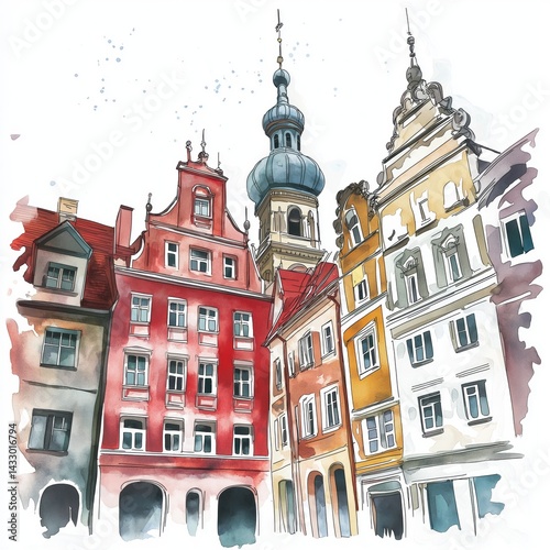 Obraz premium Riga Old Town. Riga Old Town hand drawn watercolor illustration