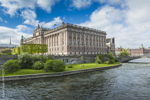 Naklejka premium Riksdag Parliament Building and Norrbro Bridge In Stockholm, Sweden.