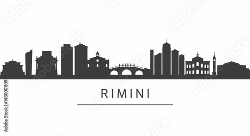 © godsfavoritearts, Naklejka premium Rimini Skyline Cityscape Silhouette Vector.