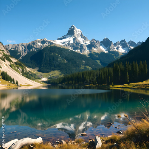 © patypixie, Fototapeta premium Rincones de Paz: Lago y Hermosa Montaña