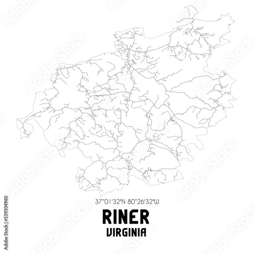 Obraz premium Riner Virginia. US street map with black and white lines.