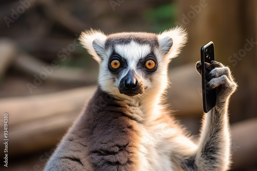 © Karolina, Obraz premium Ring lemur catta making selfie