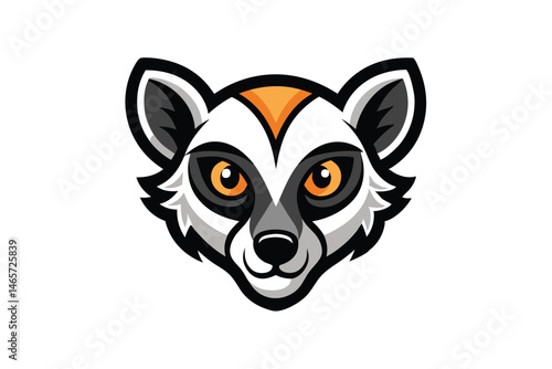 © Brojendra, Fototapeta premium Ring tailed lemur face has a white and gray pattern with orange eyes