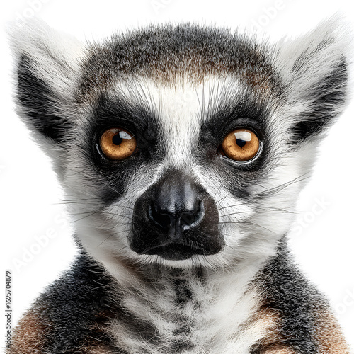 © Taha, Fototapeta premium Ring-tailed lemur front view white isolated background image, clear detail and natural light, simple clean look simple style clean look soft tone calm mood minimal style natural light clear focus high
