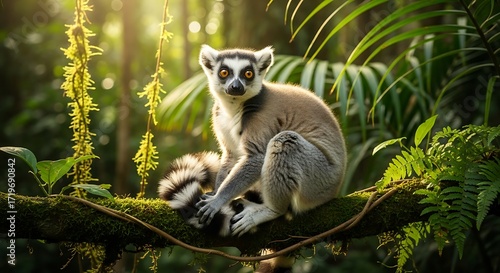 © bayu, Obraz premium Ring-tailed Lemur in Lush Rainforest.