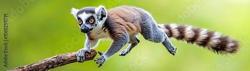 Fototapeta premium Ring-tailed Lemur Jumping on a Branch.