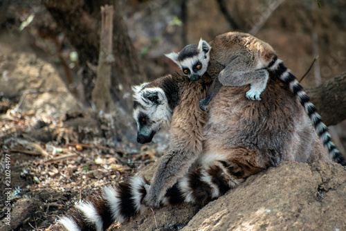 © mirecca, Fototapeta premium Ring Tailed Lemur kata ,Close up Ring-tailed lemur baby and mother.Wild nature Madagascar