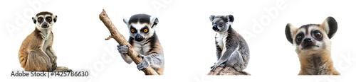 © Maestro, Fototapeta premium Ring-tailed lemur, koala, mongoose lemur portraits, cut out transparent