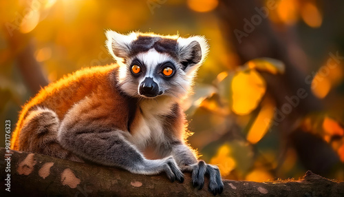 © blackdiamond67, Obraz premium Ring-Tailed Lemur on tree in natural habitat