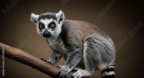 Obraz premium Ring tailed lemur perched on a branch against a dark background