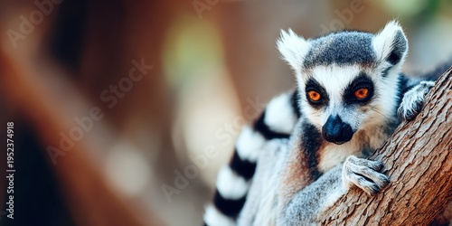 © Eduards V., Fototapeta premium Ring-tailed lemur perched on a tree branch, observing