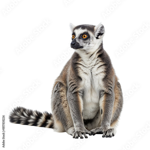 Obraz premium Ring tailed lemur sitting gracefully isolated on transparent background