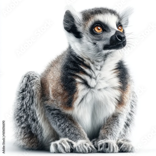 © TimelessClicks, Fototapeta premium Ring-tailed lemur sitting, isolated on white, animal portrait