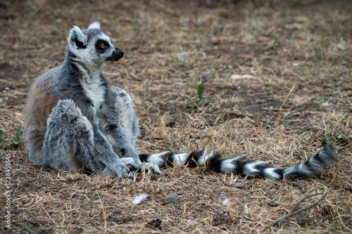 Obraz premium Ring-tailed Lemur Sitting on the Ground