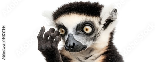 © kirania, Obraz premium Ring tailed lemur with hand near face stares intently