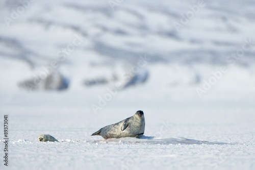 © aussieanouk, Obraz premium Ringelrobbe mit Robbenbaby