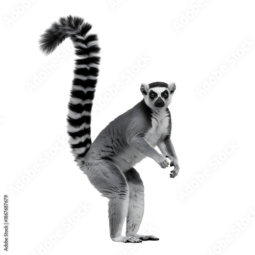 © Habib, Fototapeta premium Ringtailed lemur standing on hind legs looking forward transparent background