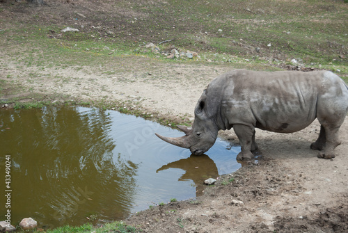 © Claudio Castillo, Fototapeta premium rinoceronte blanco bebiendo