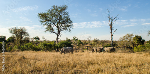 Obraz premium Rinoceronti, savana, safari, Kruger Park - Sudafrica