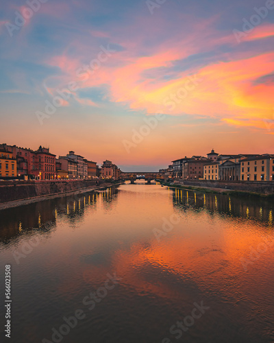 Obraz premium Rio Arno, florencia, al atardecer en verano