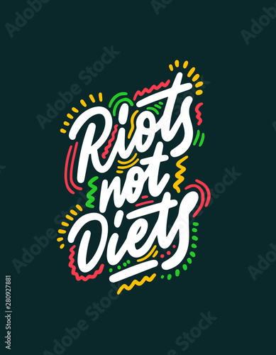Obraz premium Riots, not diets. Vector phrase for apparel and prints. Body positive saying.
