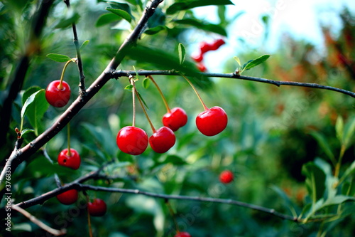 Obraz premium Ripe cherry on a branch.