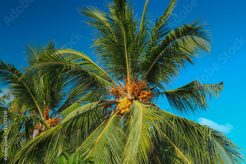 © Елизавета Панина, Fototapeta premium ripe coconut on a palm tree