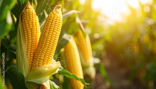 © salwa, Obraz premium Ripe Corn in Sunny Field.