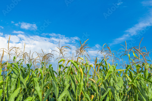 Fototapeta premium Ripe cornfield under the blue sky