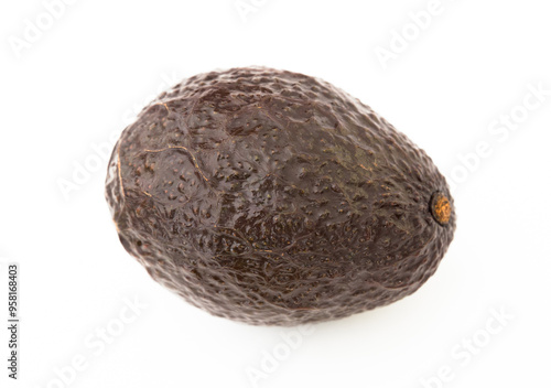 © caftor, Fototapeta premium Ripe dark avocado on white background