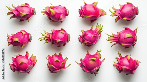 © Rizvan, Fototapeta premium Ripe dragon fruit displayed on a white background