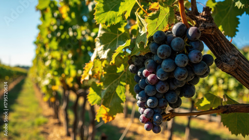 Fototapeta premium Ripe grapes hanging on the vine in a vineyard on a sunny day