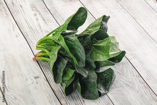 © Andrei Starostin, Fototapeta premium Ripe green spinach leaves heap