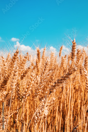 Fototapeta premium Ripe harvest ready wheat crop field in summer