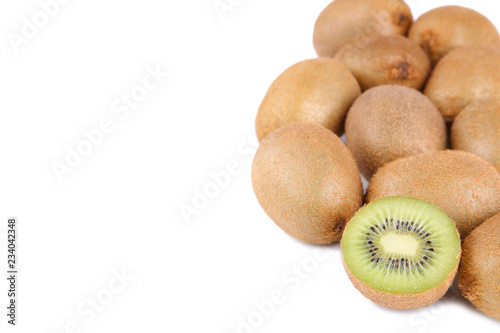 Obraz premium Ripe kiwi fruit and half kiwi fruit isolated on white background