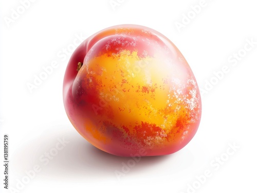 © Enjoy, Obraz premium Ripe Nectarine Close up Red and Yellow Hues on White