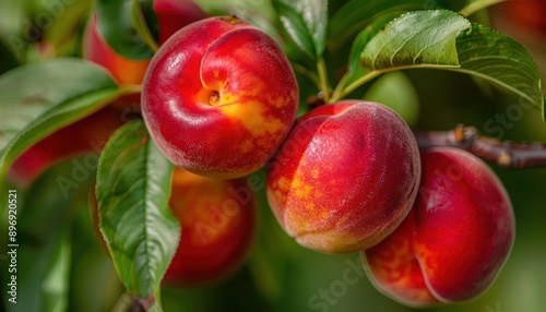 © Nathan, Obraz premium Ripe Nectarines on Tree Branch