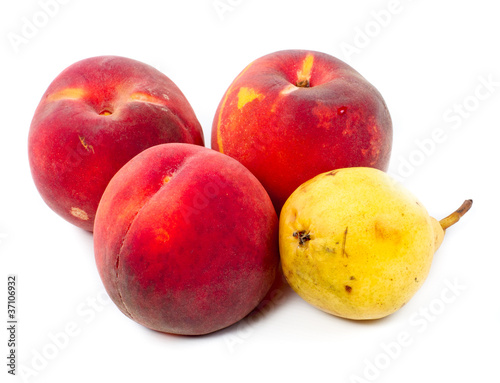 Fototapeta premium Ripe peach fruit and pear
